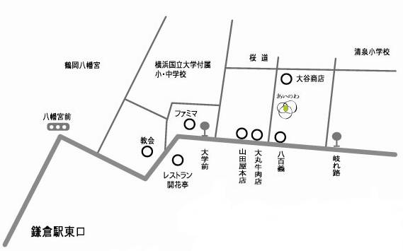 鎌倉駅東口より 湘南京急バス 鎌20系統 大塔宮行/鎌23系統 鎌倉霊園正門前太刀洗行/鎌24系統 金沢八景駅行/鎌36系統 ハイランド循環(5分)「岐れ道」下車1分